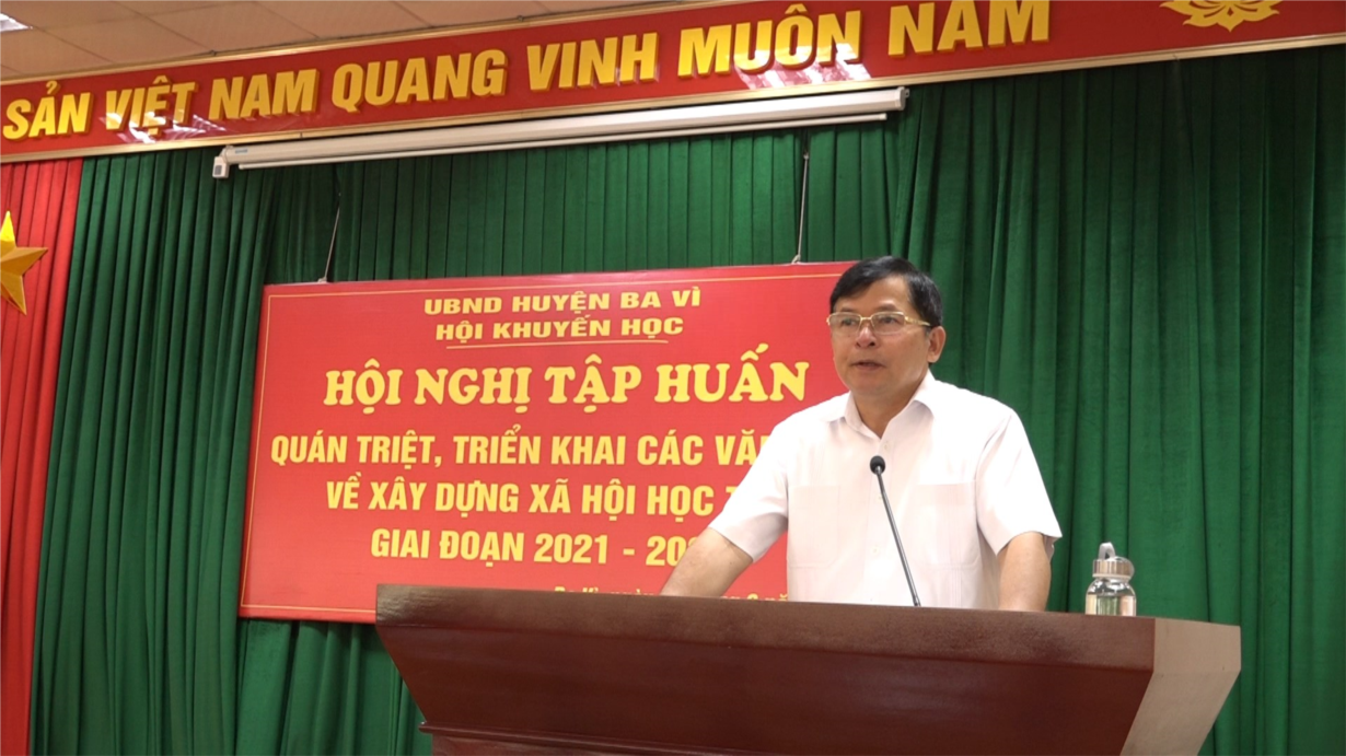 Ông Bạch Công Tiến – Chủ tịch Hội khuyến học huyện Ba Vì phát biểu tại hội nghị