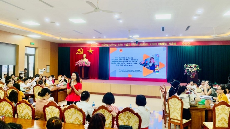 Tại lớp bồi dưỡng, các đồng chí CBQL, giáo viên đã chia sẻ những khó khăn, hạn chế khi tổ chức cho trẻ các hoạt động làm quen với Toán. Với nội dung bồi dưỡng lồng ghép tích hợp nhẹ nhàng qua các trò chơi, cùng với việc đổi mới phương pháp, hình thức tổ chức lớp học và sự tâm huyết, nhiệt tình hướng dẫn giảng dạy của các đồng chí giảng viên, sau buổi bồi dưỡng các đồng chí Cán bộ quản lý, giáo viên các nhà trường đã được cung cấp thêm một số nội dung, hình thức, tận dụng mọi cơ hội lồng ghép tổ chức các hoạt động trải nghiệm phong phú, sáng tạo nhằm hình thành, phát triển các biểu tượng Toán cho trẻ ở trường mầm non.