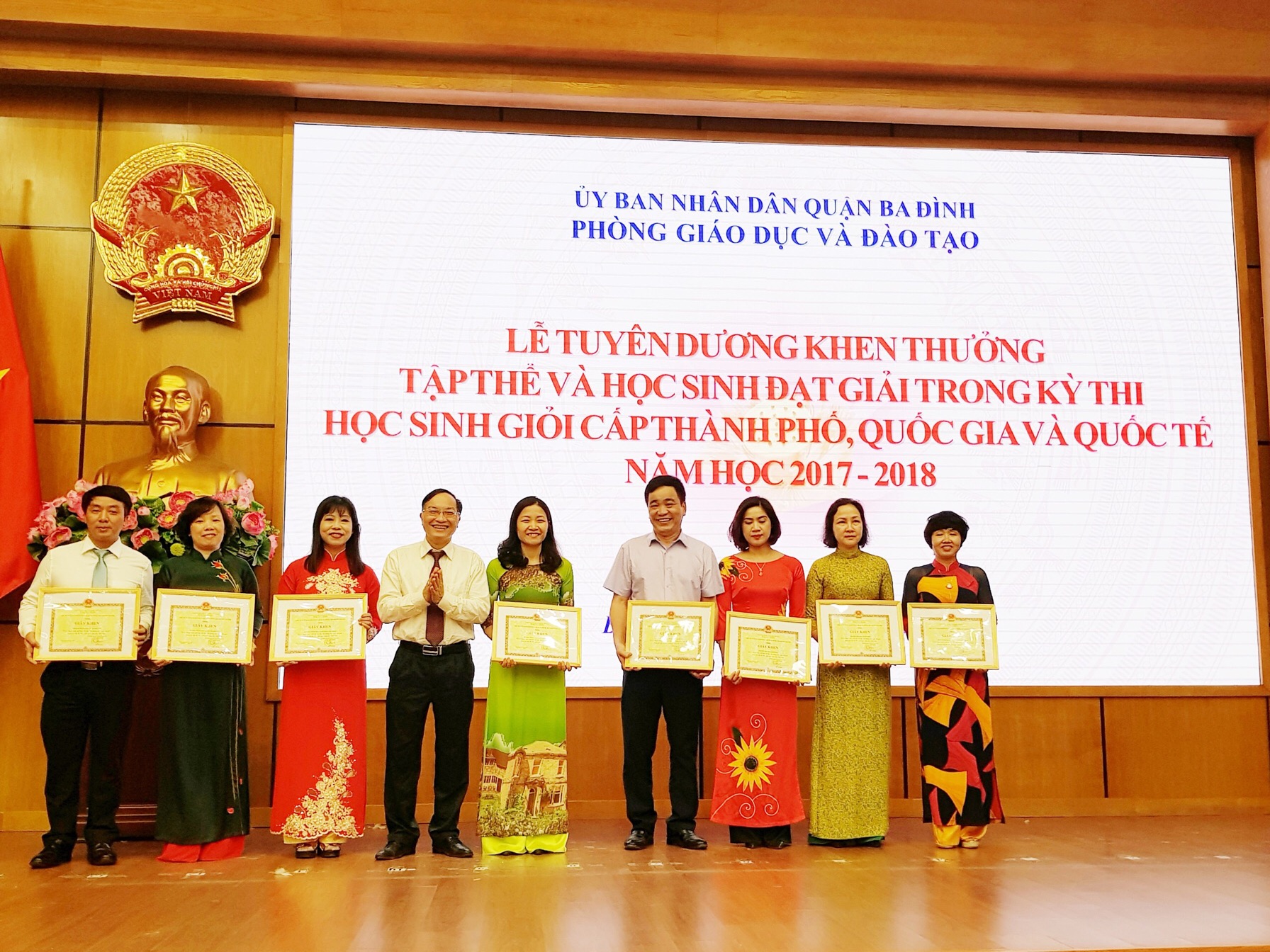 Đây cũng là dịp để quận Ba Đình tuyên dương các tập thể có thành tích cao trong công tác chỉ đạo, bồi dưỡng HSG như: TH Hoàng Diệu, TH Kim Đồng, THCS Giảng Võ, THCS Thăng Long, THCS Phan Chu Trinh, THCS Thành Công…