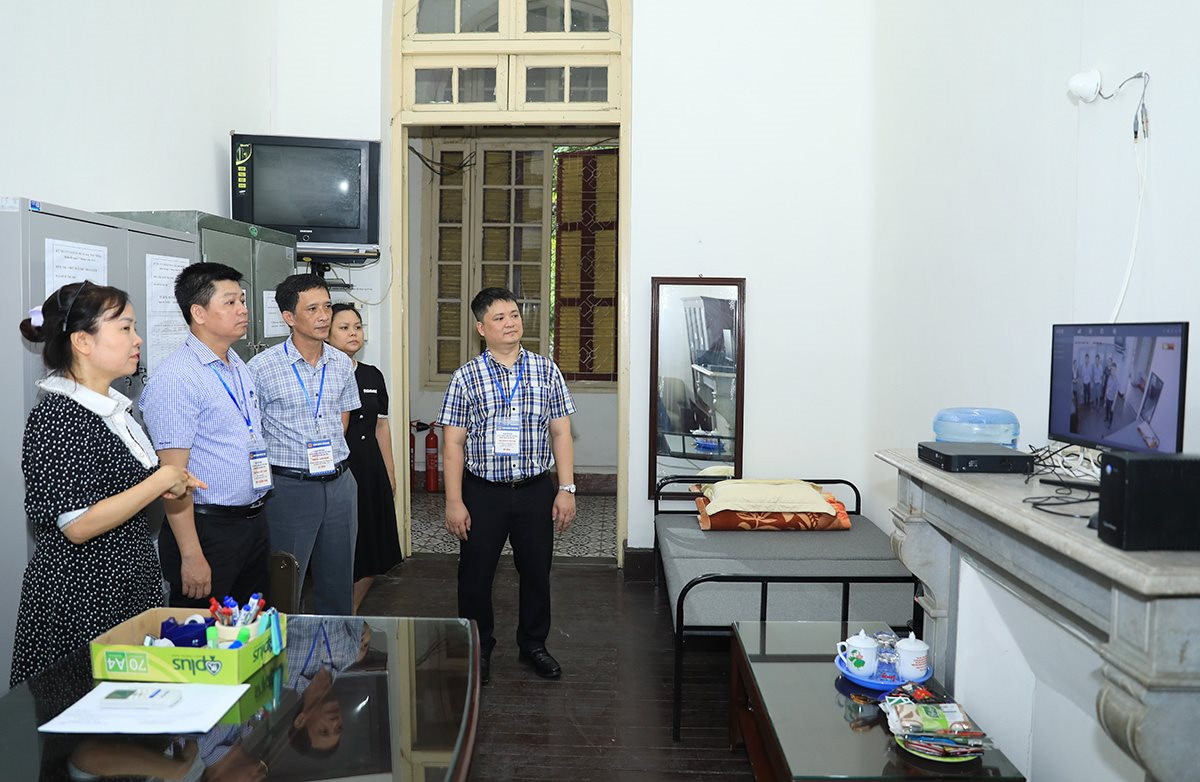 Đoàn kiểm tra của Sở Giáo dục và Đào tạo Hà Nội kiểm tra công tác chuẩn bị kỳ thi tại Trường Trung học phổ thông Trần Phú (quận Hoàn Kiếm).