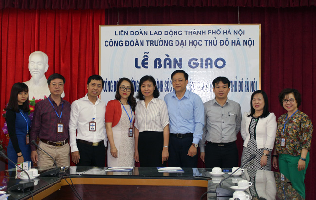 Trong không khí phấn khởi, nghiêm túc, đúng quy định, thủ tục của Điều lệ Công đoàn Việt Nam, trước sự chứng kiến của đồng chí Nguyễn Thị Thu Hằng, Phó ban Tổ chức LĐLĐ Thành phố, các đồng chí lãnh đạo trường Đại học Thủ đô, đồng chí Trần Văn Thảnh - Phó Chủ tịch CĐ ngành Giáo dục Hà Nội và đồng chí Trịnh Phan Thị Phong Lan - Chủ tịch Công đoàn trường ĐH Thủ đô đã ký Biên bản chuyển giao Công đoàn cơ sở trường Trung cấp kinh tế - kỹ thuật đa ngành Sóc Sơn về Công đoàn trường ĐH Thủ đô Hà Nội.