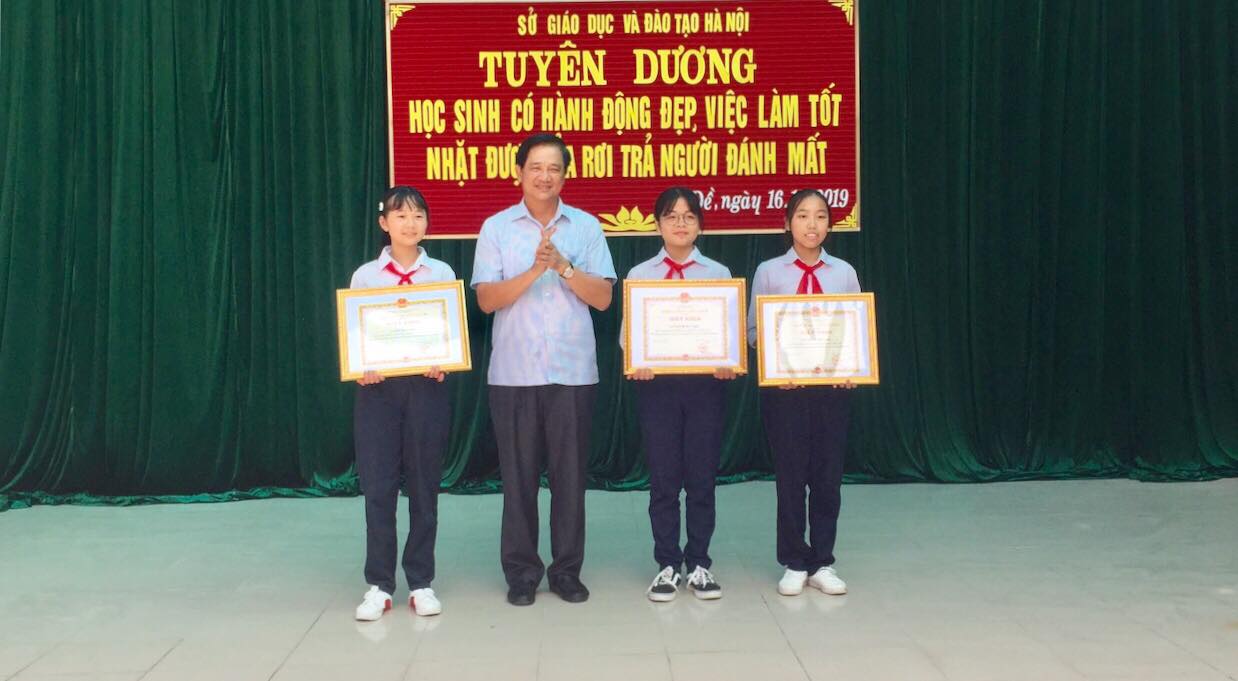 Tại buổi lễ tuyên dương, cảm ơn hành động đẹp của các em học sinh, ông Phạm Xuân Tiến, Phó Giám đốc Sở Giáo dục và Đào tạo Hà Nội khẳng định, việc làm ý nghĩa của các em chính là kết quả của một bài học mà ai cũng được học từ khi còn nhỏ, đó là “nhặt được của rơi trả người đánh mất”. Hành động của các em không chỉ làm lan tỏa bài học đó trong nhà trường mà còn trong cộng đồng, trong toàn xã hội.