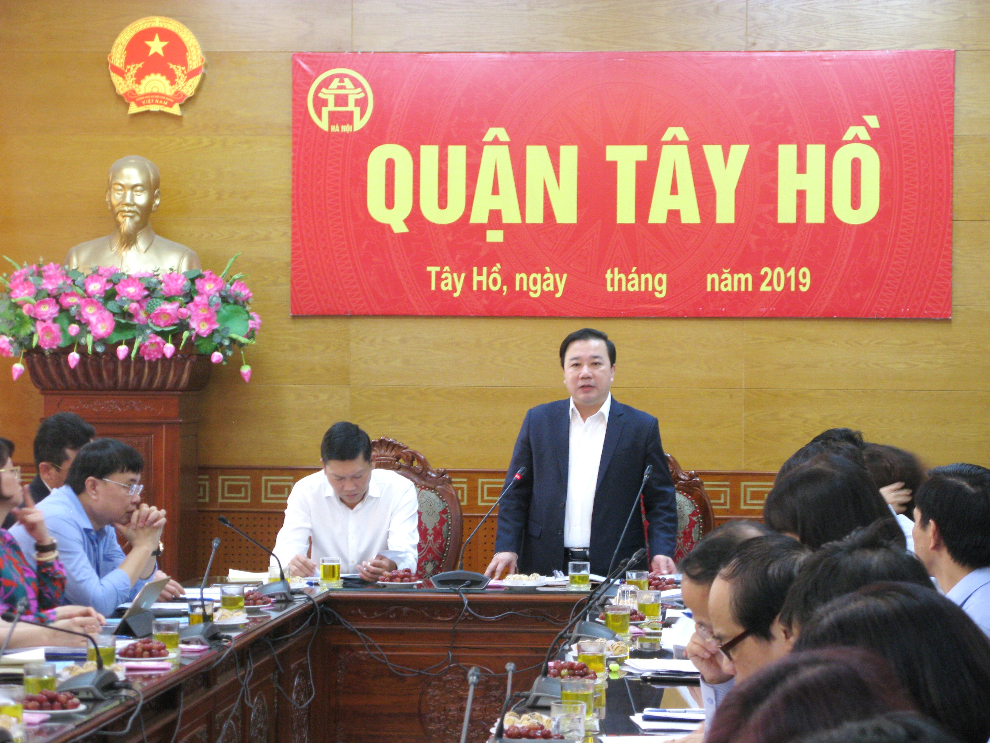 Chủ tịch UBND quận Tây Hồ Đỗ Anh Tuấn phát biểu tại buổi làm việc