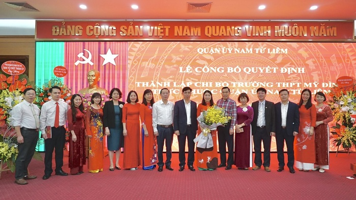 Tại buổi lễ, BTC Quận ủy đã công bố Quyết định thành lập Chi bộ trường THPT Mỹ Đình trực thuộc Quận uỷ Nam Từ Liêm. Cụ thể, thành lập Chi bộ trường THPT Mỹ Đình là chi bộ cơ sở trực thuộc Quận uỷ gồm 11 đảng viên; Chi bộ có trách nhiệm lãnh đạo toàn diện các hoạt động của Chi bộ theo quy định Điều lệ Đảng, đúng đường lối, nghị quyết của Đảng và chính sách pháp luật của Nhà nước; các Ban Đảng Quận uỷ, Văn phòng Quận uỷ, Chi bộ trường, các đồng chí đảng viên và cơ quan, đơn vị liên quan căn cứ Quyết định thi hành. Trong đó, chỉ định đồng chí Nguyễn Thu Hà – Hiệu trưởng trường THPT Mỹ Đình giữ chức danh Bí thư Chi bộ.