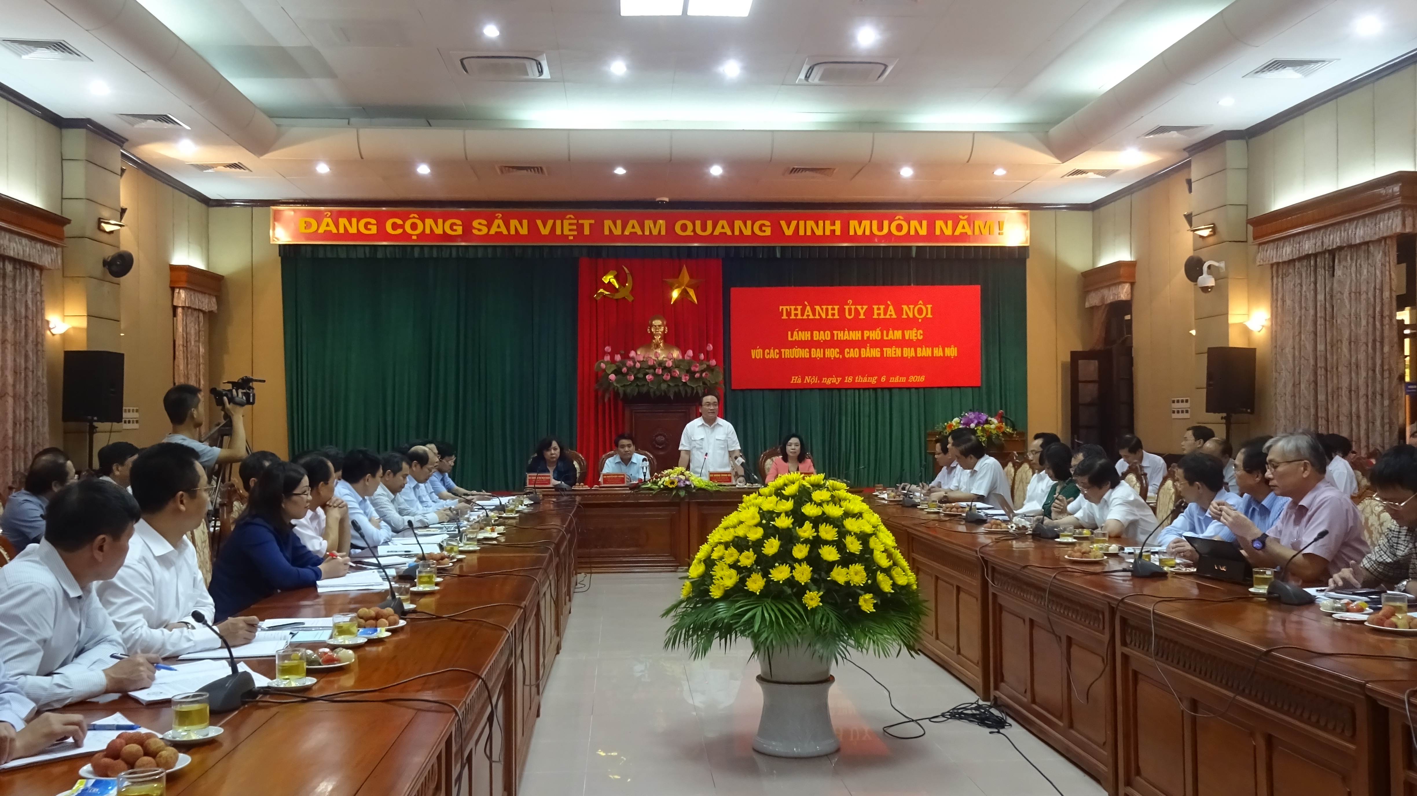 Phát biểu khai mạc buổi làm việc, đồng chí Hoàng Trung Hải – UVBCT, Bí thư Thành ủy Hà Nội nhấn mạnh: Với vị trí Thủ đô của đất nước, Hà Nội là nơi tập trung đông nhất các học viện, trường đại học, trường cao đẳng, trong đó có nhiều trường đào tạo hàng đầu cả nước; nơi có nguồn nhân lực dồi dào, đặc biệt là nguồn nhân lực chất lượng cao, hội tụ đông đảo đội ngũ trí thức, nhà giáo, nhà khoa học, nhà quản lý, các chuyên gia đầu ngành trên nhiều lĩnh vực. Thành phố Hà Nội luôn coi đây là nguồn lực, tài sản vô cùng quý giá đã, đang và sẽ đóng góp tích cực cho sự phát triển toàn diện của Thủ đô.