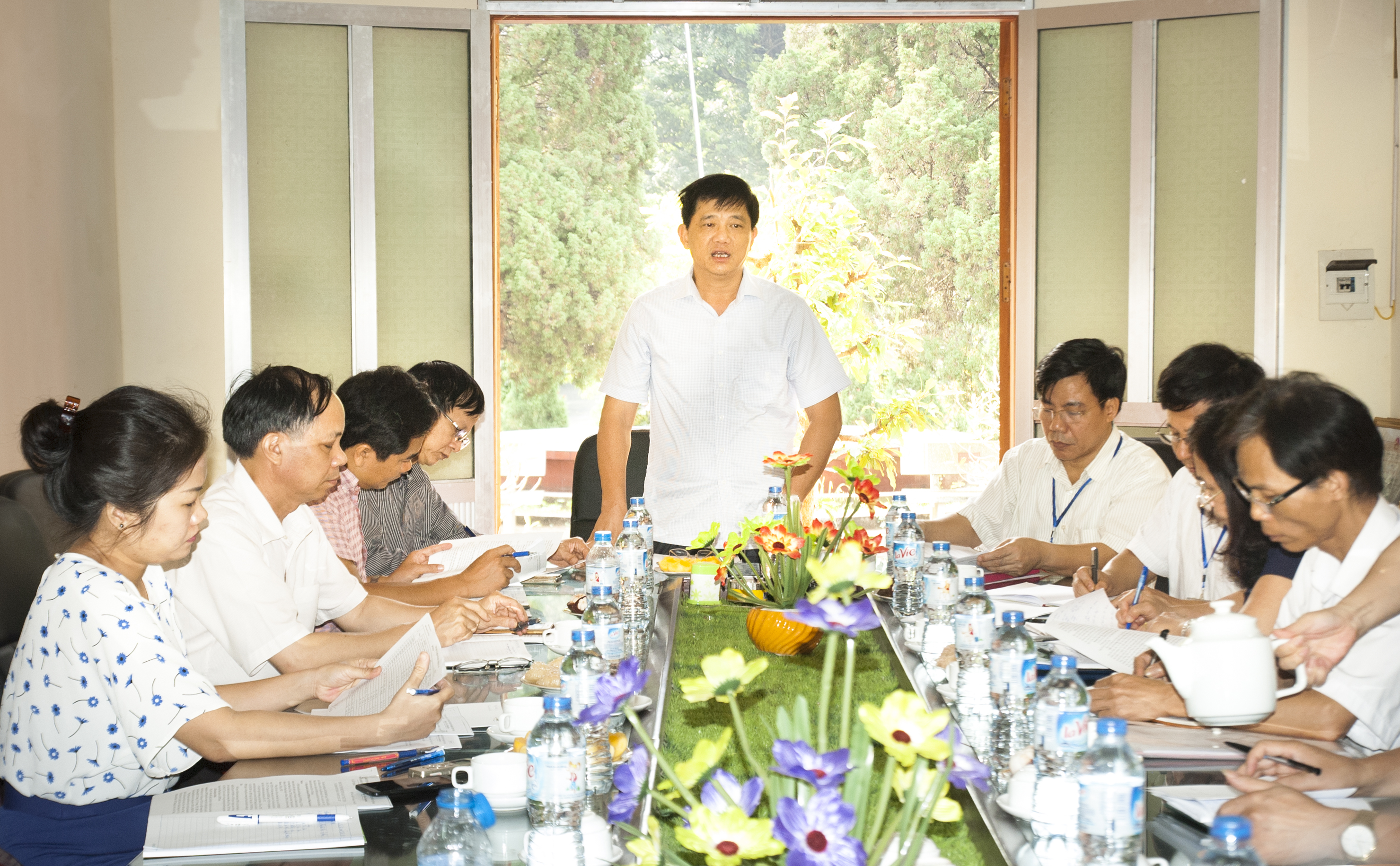 PGĐ Sở GD&ĐT Hà Nội Phạm Xuân Tiến phát biểu chỉ đạo công tác thu, chi tại phòng GD&ĐT huyện Mỹ Đức