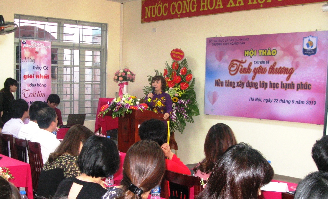 Phát biểu tại hội thảo, cô giáo Lưu Thị Lập, Hiệu trưởng nhà trường cho biết: Xuất phát điểm từ chính thực tiễn của nền giáo dục và định hướng phát triển lâu dài của Trường THPT Hoàng Cầu, trong nhiều năm nay, bên cạnh việc nâng cao chất lượng chuyên môn, thì việc tạo ra môi trường học tập tích cực, thân thiện tiến đến mục tiêu “Trường học hạnh phúc - Thầy cô hạnh phúc- Học sinh hạnh phúc” là điều mà nhà trường đặc biệt quan tâm. Trước đó, trong năm học 2018-2019, nhà trường đã tổ chức Hội thảo chuyên đề “Giáo viên chủ nhiệm với kỹ năng xây dựng lớp học hạnh phúc”. Những buổi Hội thảo này chính là cơ hội để các thầy cô giáo, các lực lượng phục vụ giáo dục nhà trường cùng nhìn lại những điều mình đã làm được, đã thay đổi được cũng như cả những điều chưa làm được, chưa thay đổi được trong thời gian qua…