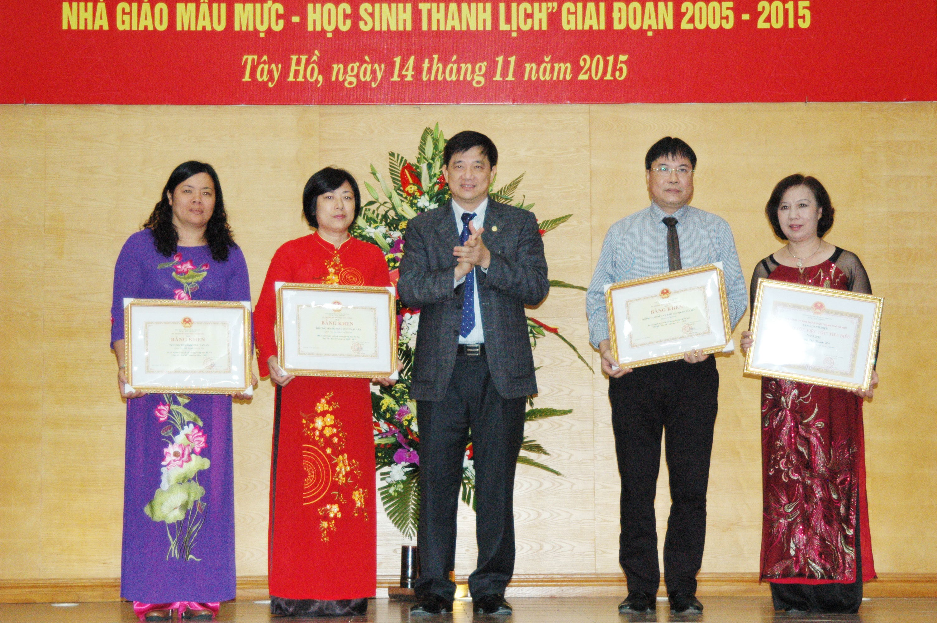 Tại buổi lễ, nhiều tập thể và cá nhân được tôn vinh trong phong trào thi đua Dạy tốt - Học tốt của Ngành GD&ĐT quận Tây Hồ năm học 2014-2015, trong đó có 3 tập thể được nhận Bằng khen của Bộ trưởng Bộ GD&ĐT gồm: Phòng GD&ĐT quận Tây Hồ, THCS Nhật Tân, Tiểu học Chu Văn An. Hiệu trưởng trường MN Chu Văn An Vũ Thị Thanh Hà là một trong những tấm gương người tốt, việc tốt tiêu biểu được nhận Bằng khen của Chủ tịch UBND Thành phố.