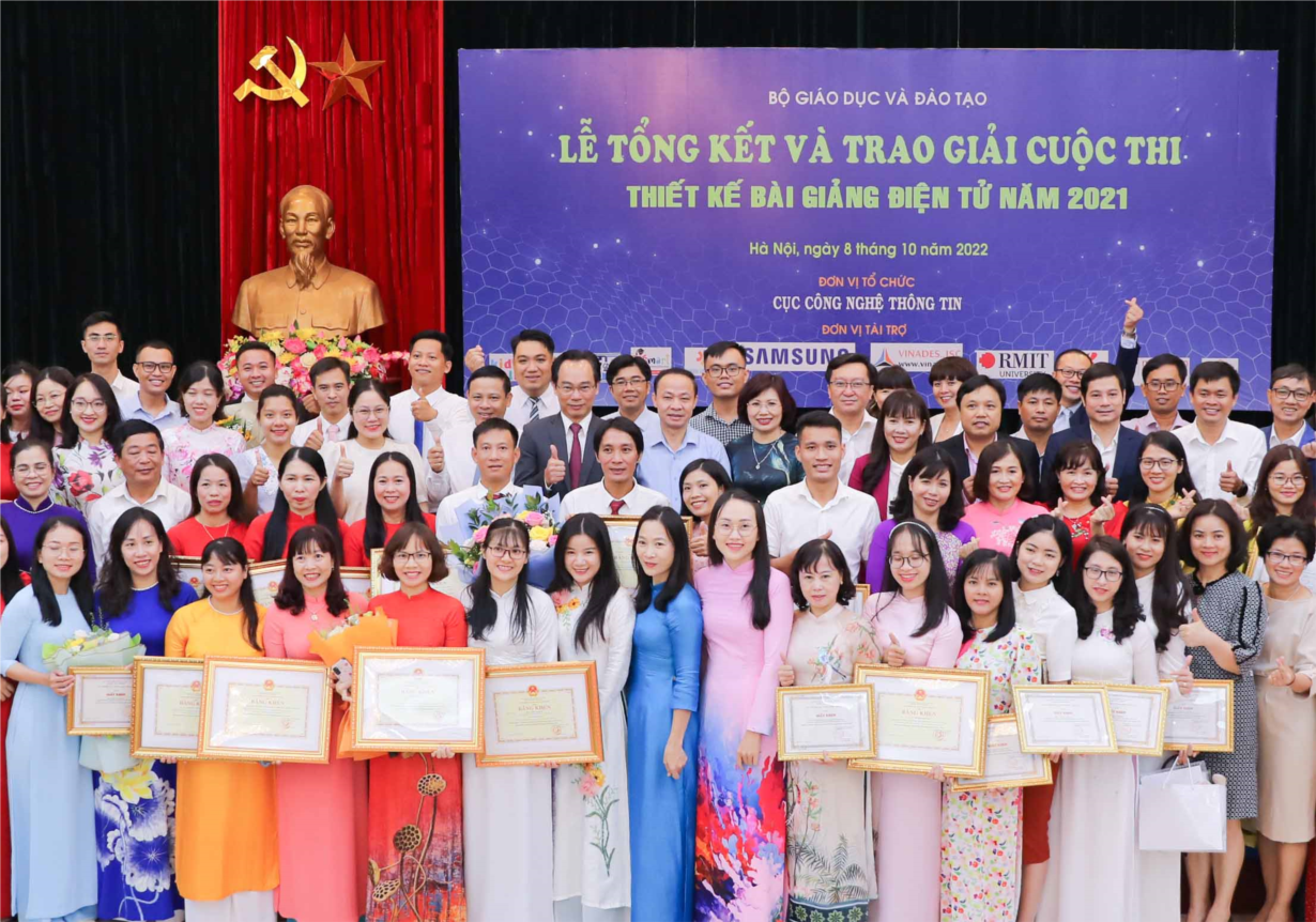 Hưởng ứng Ngày chuyển đổi số Việt Nam 10/10 và hướng đến kỷ niệm 40 năm ngày nhà giáo Việt Nam, sáng ngày 8/10/2022, tại trụ sở Bộ GDĐT diễn ra lễ tổng kết, trao giải Cuộc thi thiết kế bài giảng điện tử năm 2021. Buổi lễ do Thứ trưởng Bộ GDĐT Hoàng Minh Sơn chủ trì chỉ đạo, Cục CNTT (Bộ GDĐT) chủ trì tổ chức.