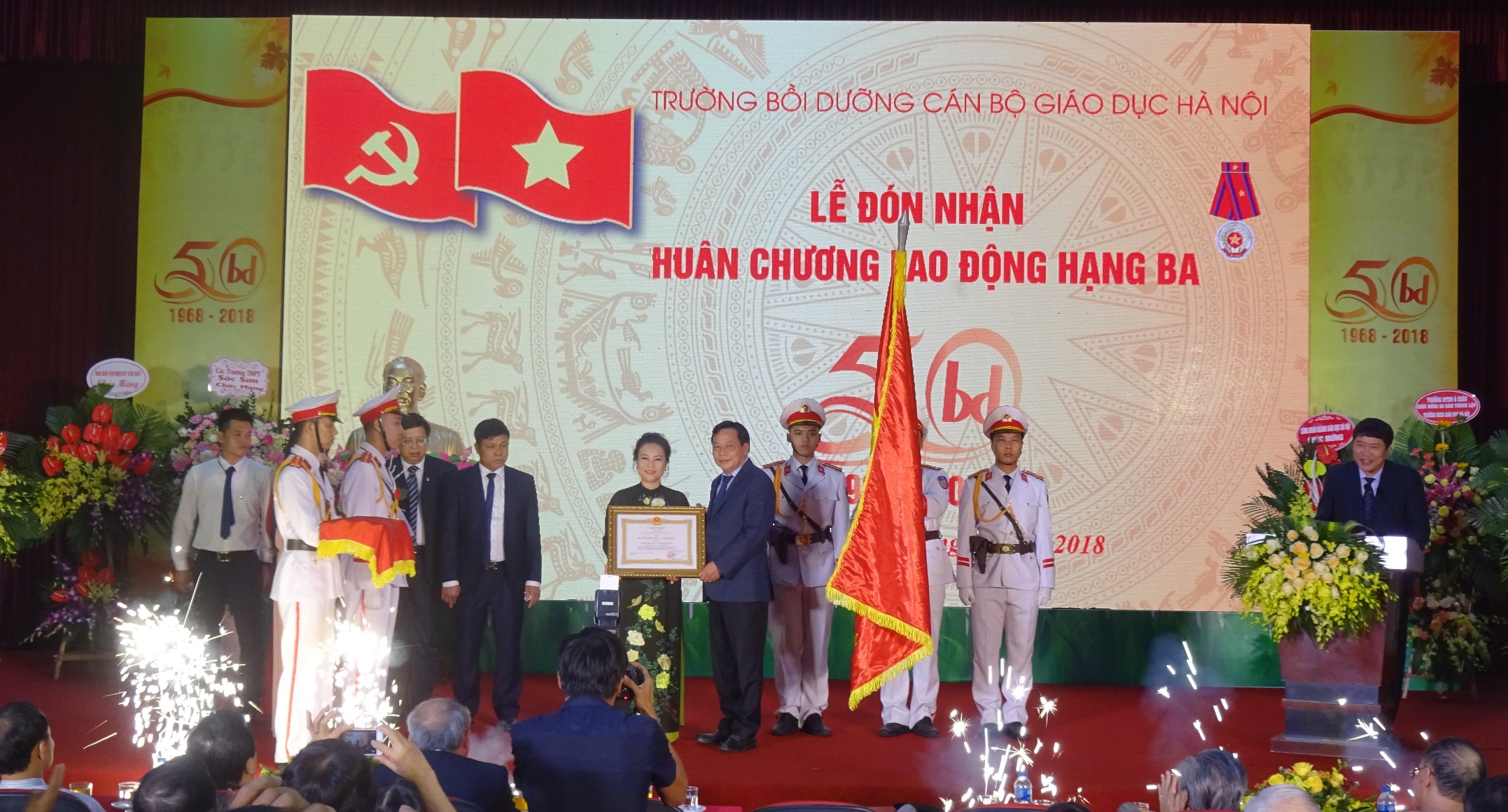 Trưởng Ban Tuyên giáo Thành ủy Hà Nội Nguyễn Văn Phong thừa ủy quyền của lãnh đạo Đảng, Nhà nước, TP.Hà Nội trao Huân chương Lao động hạng Ba cho nhà trường