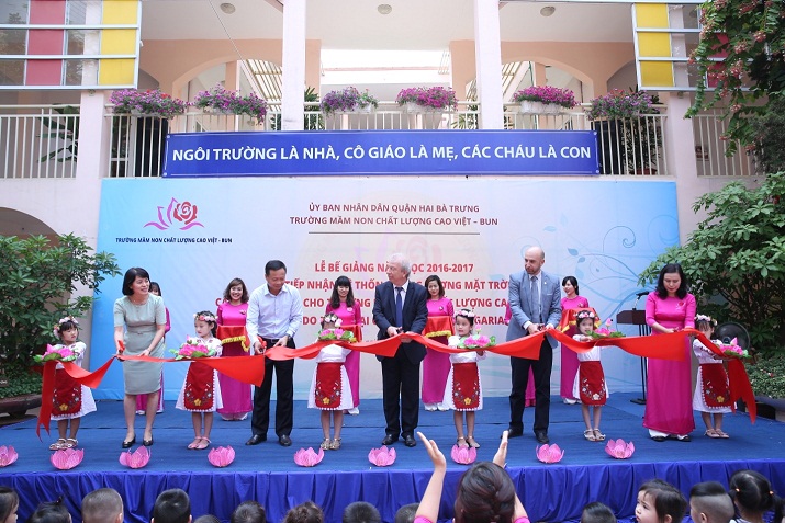 Ngài EvgueniStoytchev Đại sứ đặc mệnh toàn quyền nước Cộng hòa Bulgaria tại Việt Nam; Ngài Zdravko Zdravkop Giám đốc dự án; Ông Cáp Sĩ Phong Uỷ viên Ban thường vụ - Phó Chủ tịch UBND Quận Hai Bà Trưng; Bà Hoàng Thanh Hương - Trưởng phòng mầm non Sở giáo dục và Đào tạo Hà Nội; Bà Bùi Thị Kim Xuân - Hiệu trưởng trường mầm non CLC Việt – Bun đã cắt băng khánh thành.