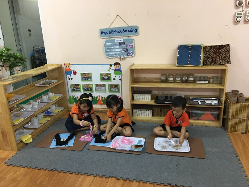 Các bé trường mầm non Tràng An đang say sưa trong giờ tạo hình