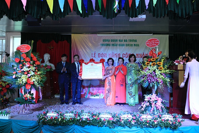 Đến dự lễ đón bằng có NGƯT.TS Lê Ngọc Quang - Phó Giám đốc Sở GD&ĐT Hà Nội cùng các đồng chí lãnh đạo các phòng ban Sở GD&ĐT; Đồng chí Đinh Thị Lan Duyên Phó bí thư thường trực - Chủ tịch HĐND quận Hai Bà Trưng, đồng chí Vũ Đại Phong, Phó Bí thư - Chủ tịch UBND cùng các tổ chức chính trị, đoàn thể của Quận, phường Phạm Đình Hổ. Sự kiện này đánh dấu một bước phát triển mới trong lịch sử 62 năm xây dựng và phát triển nhà trường. Từ một lớp tư thục với 15 học sinh do nhà dân hiến tặng, đến nay nhà trường đã có một cơ ngơi khang trang với một bề dày thành tích ít trường Mầm non có được: 39 năm đạt danh hiệu trường tiên tiến xuất sắc cấp thành phố, 5 huân chương lao động hạng nhất, nhì, ba, 1 huân chương độc lập, 1 cờ luân lưu, 1 Bằng khen của Thủ tướng Chính phủ, 1 bằng khen của Tổng Liên đoàn lao động Việt nam, 3 Bằng khen của Bộ giáo dục và đào tạo, 3 lần đạt cờ thi đua của Thành phố và đặc biệt là được Nhà nước phong tặng danh hiệu Anh hùng lao động thời kì đổi mới năm 1999. Phát biểu trong buổi lễ, cô giáo Nguyễn Thị Kim Oanh, Bí thư chi bộ, Hiệu trưởng nhà trường xúc động chia sẻ quá trình xây dựng trường chuẩn Quốc gia và thay mặt tập thể Cán bộ giáo viên nhân viên nhà trường xin hứa với các cấp lãnh đạo, chính quyền địa phương và các bậc phụ huynh sẽ nỗ lực phấn đấu vươn lên để khẳng định vị trí của trường Mầm non đã đạt chuẩn Quốc quốc gia mức độ 1 và tiếp tục có những bước đi mới tiến tới xây dựng nhà trường đạt chuẩn Quốc gia mức độ 2.