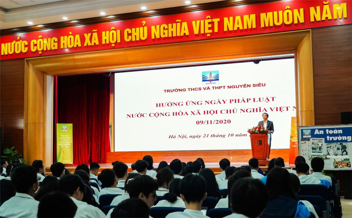 Với các khẩu hiệu: “Sống và làm việc theo Hiến pháp và pháp luật”; “Tích cực hưởng ứng Ngày Pháp luật nước Cộng hoà xã hội chủ nghĩa Việt Nam”; “Tìm hiểu, học tập và chấp hành pháp luật là trách nhiệm của mọi công dân”; “Thực hiện Quy tắc ứng xử nơi công cộng là trách nhiệm của cán bộ, công chức, viên chức, người lao động và Nhân dân thủ đô”, tháng hưởng ứng “Ngày pháp luật nước CHXHCN Việt Nam 9/11/2020 được phát động trong toàn thể cán bộ, giáo viên, nhân viên và học sinh Trường Nguyễn Siêu. Cộng đồng nhà trường nghiêm túc tìm hiểu, tôn trọng và nghiêm chỉnh thực hiện Hiến pháp, pháp luật; tích cực chung tay góp phần đưa Hiến pháp, pháp luật đi vào giáo dục và cuộc sống.