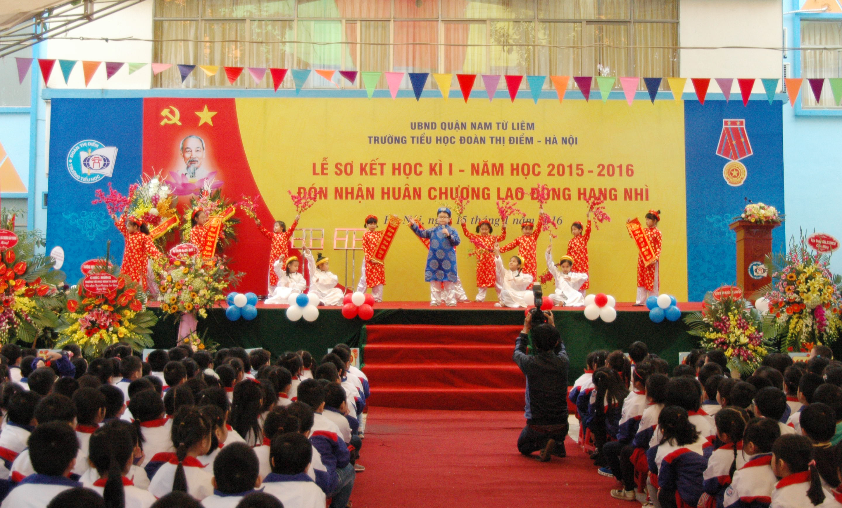 Học sinh hát múa mừng trường đón nhận Huân chương Lao động hạng Nhì