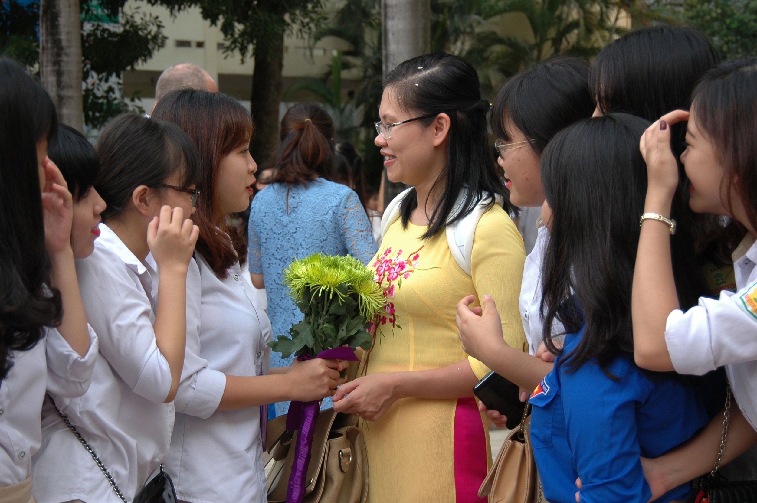 Học sinh tặng hoa tri ân các thầy cô giáo