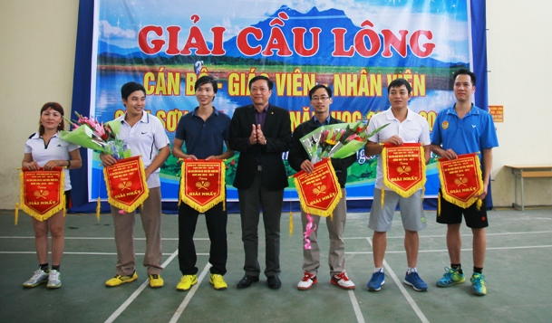 Đồng chí Trần Văn Thảnh - Phó chủ tịch Công đoàn Giáo dục Hà Nội trao giải nhất cho các vận động viên
