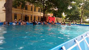 + 02 giáo viên giảng dạy có trình độ chuyên môn, đã có nhiều năm kinh nghiệm dạy bơi do Trung tâm TDTT huyện tổ chức