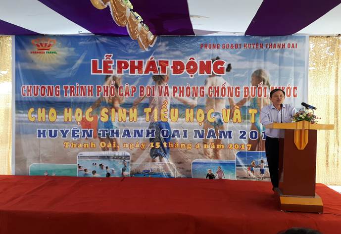 Ngày 15 /4/2017 tại trường Tiểu học Hồng Dương, huyện Thanh Oai, Thành Phố Hà Nội đã Phát động Chương trình Phổ cập bơi và Phòng chống đuối nước cho học sinh Tiểu học và THCS trên địa bàn Huyện Thanh Oai - năm 2017 về dự và chỉ đạo có Ông Phạm Ngọc Tuấn - Trưởng phòng Chính trị tư tưởng SGD&ĐT Hà Nội; Ông Nguyễn Huy Diệp- Phó Chủ tịch UBND Huyện Thanh Oai; Ông Đoàn Việt Dũng-Trưởng Phòng GD&ĐT Thanh Oai; Đại diện lãnh đạo Trung tâm văn hóa-Thông tin và Thể thao huyện; Huyện đoàn, Hiệu trưởng và giáo viên thể dục của các trường Tiểu học và THCS trong huyện Thanh Oai cùng công ty CP Đầu tư Thương mại Dịch vụ Lữ hành Quốc tế Hoàng Gia; Đại diện các Ban Ngành của Xã Hồng Dương và Cha mẹ học sinh.