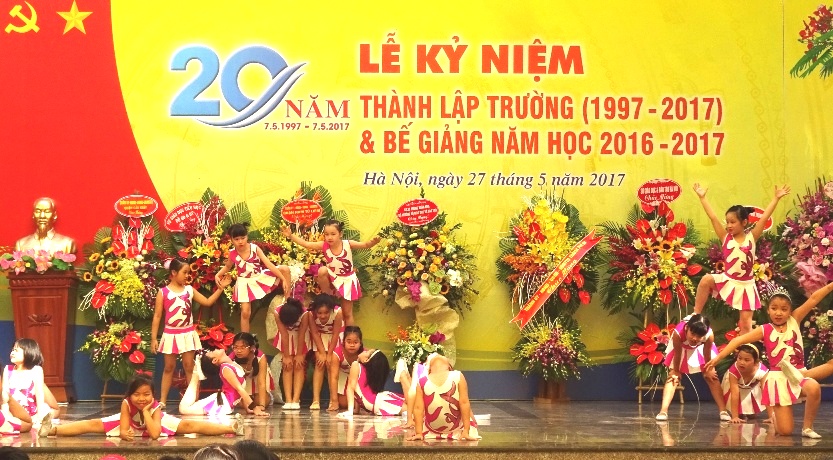 Phó Bí thư thường trực Thành ủy Hà Nội Ngô Thị Thanh Hằng tặng hoa chúc mừng nhà trường