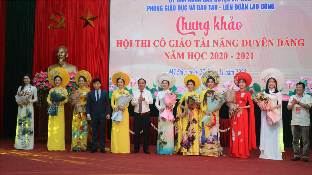 Trong thời gian qua, Ngành GD&ĐT và Liên đoàn Lao động Mỹ Đức đã triển khai và tổ chức Hội thi với mục đích tôn vinh trí tuệ, tài năng, sự sáng tạo, vẻ đẹp, sự duyên dáng, khơi dậy và phát huy tinh thần trách nhiệm, ý thức của mỗi nhà giáo trong việc học tập nâng cao trình độ hiểu biết, chuyên môn, nghiệp vụ sư phạm của các nữ nhà giáo trong giai đoạn đổi mới. Hội thi đã được tổ chức rất thành công ở 9 cụm với sự tham gia sôi nổi của 79 cô giáo không những tài năng, giàu lòng yêu nghề, mến trẻ mà còn vô cùng xinh đẹp, duyên dáng của 79 đơn vị trường mầm non, tiểu học, THCS trong huyện.