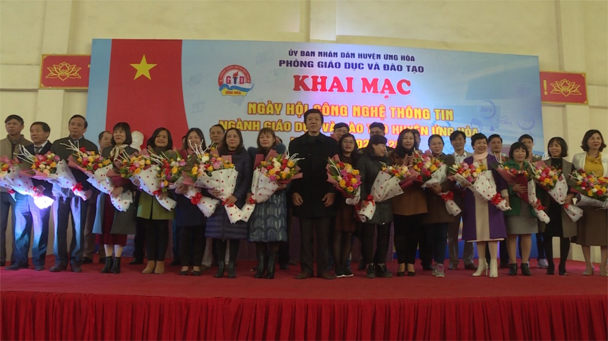 huyện tặng hoa cho các đoàn tham dự Ngày hội CNTT